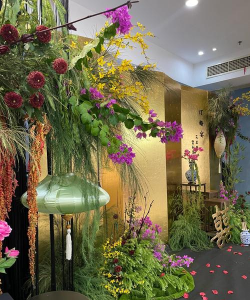 用多个花盆组成墙式盆栽,搭配悬挂式花盆,打造统一的视觉效果。适合用于办公室、卧室或客厅,提升空间绿意。花艺与香氛结合