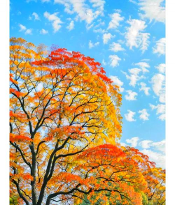 枫树在秋季会变红、变黄,形成美丽的秋叶景观。枫叶常用于园林装饰和景观设计。