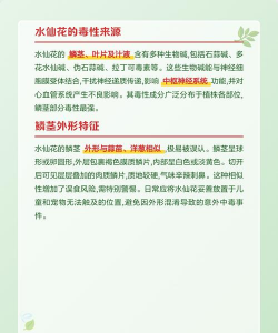 水仙中毒通常是指植物中毒症状在人或动物身上表现出来的情况。在植物学中,水仙( Narcissus )是一种常见的观赏植物,其根茎和叶中含有一定的毒性物质,尤其是水仙碱(narcissus alkaloid),对人和动物具有一定的毒性。