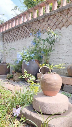 - 可用不同颜色的陶土坛子,或在坛子上装饰一些植物或小花。