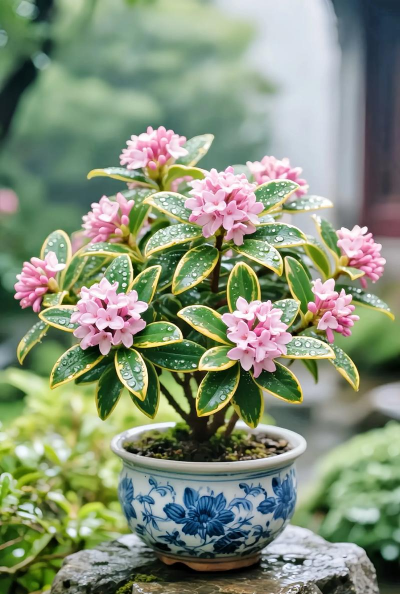 此外,金边瑞香的花朵通常在春季开花,花朵盛开时非常美丽,是庭院、花坛或盆栽中非常受欢迎的观赏植物。