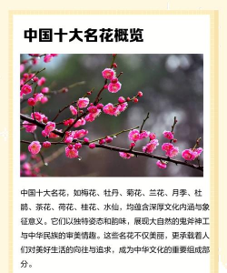 中国的十大名花是指在历史、文化、园林景观等方面具有重要地位和代表性的花卉品种,它们不仅具有观赏价值,还承载着丰富的文化内涵。以下是根据历史和文化背景整理的中国十大名花: