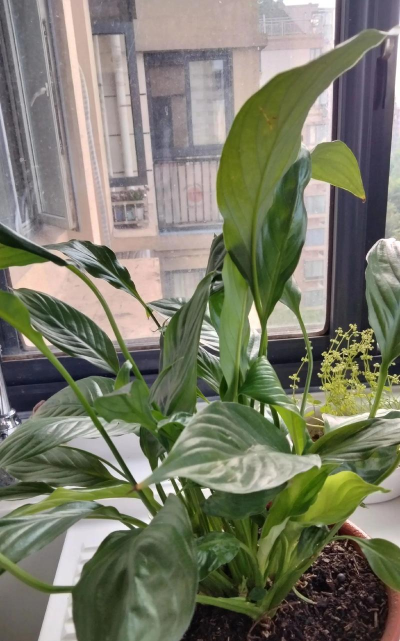 白掌喜欢明亮的散射光,如果生长环境过于阴暗,会导致叶片变小、颜色变淡,甚至出现徒长现象。