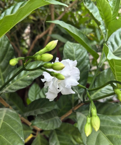狗牙花喜欢充足的阳光,如果长期处于阴暗处,会导致叶片变黄、蔫软。