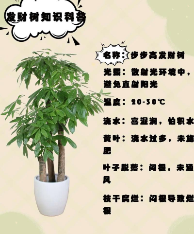H3: 发财树浇水频率取决于生长阶段和环境条件。一般情况下,发财树在生长期(春季至夏季)需要保持土壤湿润,但避免积水。休眠期(秋季至冬季)则应减少浇水频率。