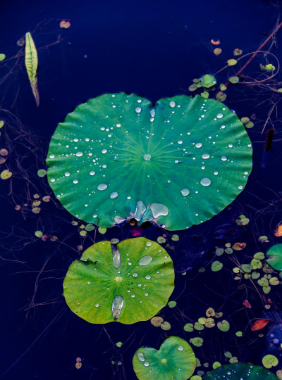 荷花叶子在晚上通常会呈现出一些特殊的生理变化,主要与植物的生理活动和环境因素有关。以下是荷花叶子在晚上可能发生的常见变化: