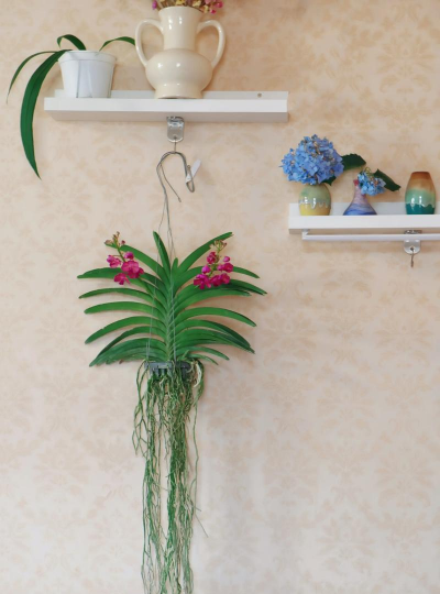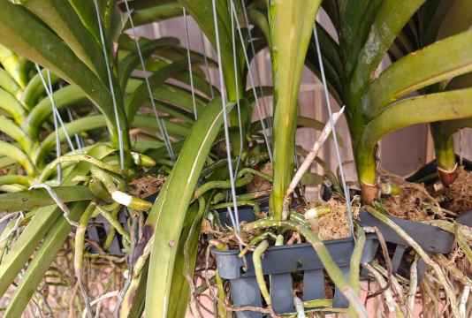 上述一般品种的万带兰,需要较强的光线,在本地高温季节只需使用40~50%的遮光网遮光,冬季甚至不需要遮光。