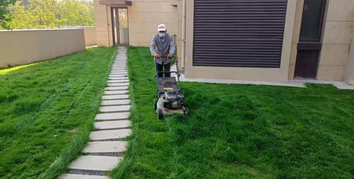 c.同一草坪,应避免每次同一方向修剪,每次要更换方向,防止在同一地点同一方向多次重复修剪,否则,草坪草将趋于退化,使草坪生长不平衡。