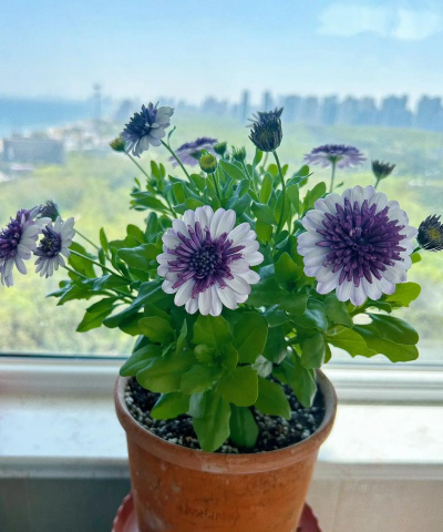 蓝目菊是一种耐旱的花卉,适合在干燥环境中生长。通常情况下,蓝目菊的浇水频率取决于环境条件、土壤湿度和植物生长阶段。以下是浇水的一般建议: