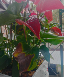 红掌有时会感染病毒,导致叶片变黄、枯萎。