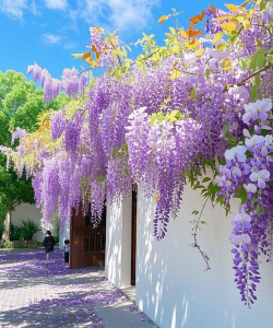生长环境特殊:在某些情况下,紫藤可能生长在树干上,例如在树干周围或树下,但这种情况较为少见,通常紫藤更倾向于攀援生长。