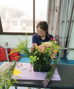 老师陪养花朵