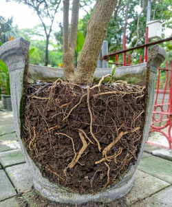 为了提高花盆的透气性和保水性,可以在树根中加入一些疏松的基质材料,如腐叶土、珍珠岩、蛭石或椰糠等。这样可以改善土壤结构,防止根系腐烂。