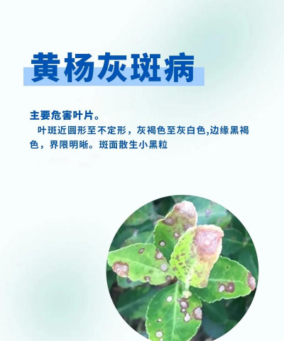 症状:叶片上出现不规则的斑点,颜色多样,严重时会导致叶片枯黄脱落。
