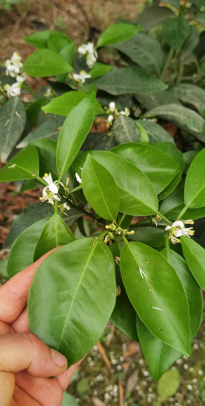 3、柑橘在谢花后春梢叶片转绿时,喷施0.4%~0.5%尿素加0.2%磷酸二氢钾混合液,可减少幼果脱落,提高坐果率。
