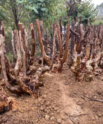 随着紫薇树的生长,树干逐渐老化,树皮变厚,形成自然的树桩状结构。人为修剪