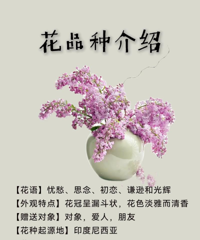 丁香花(Syringa)是一种常见的观赏植物,因其独特的香气和美丽的花朵而受到喜爱。根据不同的生长环境、观赏需求以及品种特性,丁香花有多种品种,以下是主要的品种分类: