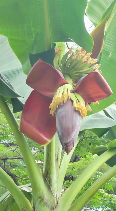 香蕉的花是雌雄异株的,属于热带植物,其花结构较为特殊,具有以下特点: