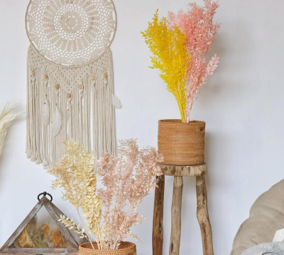 干树叶可以用于花盆的装饰,增加视觉美感。适合用于盆栽、花架、花盆边缘等,提升整体的观赏性。