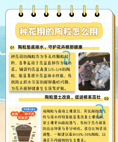 - 将陶粒与普通土壤混合使用,比例一般为3:1(陶粒:土壤)。