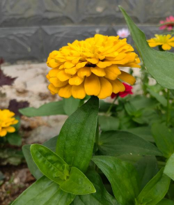 百日草和菊花有点像,它的茎干直立,花朵开在顶端,叶片带糙毛,粗枝大叶的。百日草品种也比较多,株形高低不同,矮生品种40公分左右,高的有半人的高度,这时的百日草看起来就颇有野趣了。
