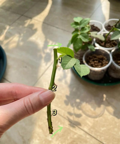 选择生长健壮、无病虫害、芽点饱满的枝条,长度一般为10-15厘米,保留2-3个芽点。准备花泥