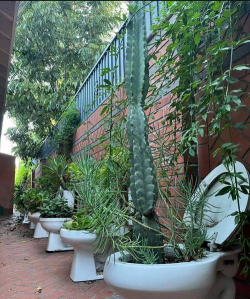 用马桶种植植物,践行绿色生活理念,为地球减负。创意生活