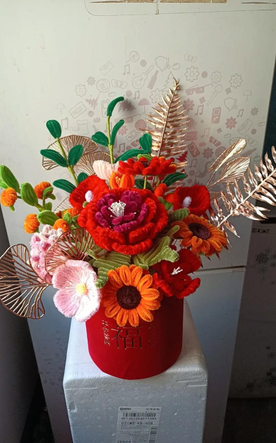 挂绳花瓶可以搭配花盆、装饰物等,提升整体装饰效果。