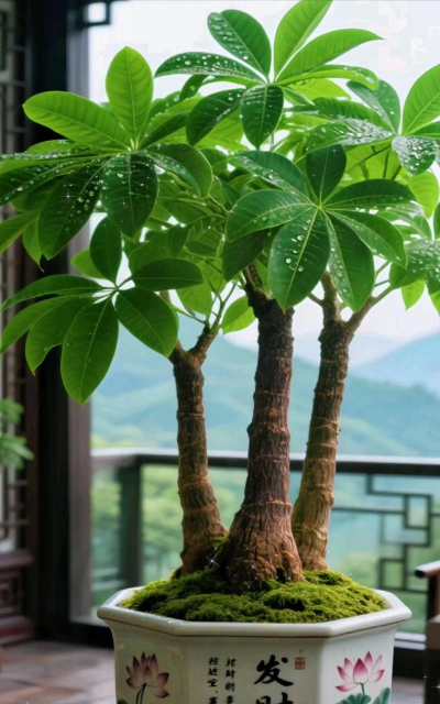 固定根系:将发财树的根系轻轻修剪至适当长度,然后用湿润的土壤或苔藓包裹根系,确保根系不会松动。