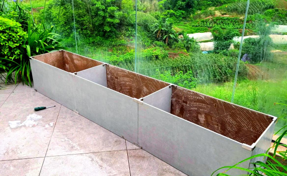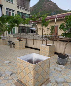 砖沏养花水槽通常由砖块或陶土制成,内部有多个孔洞,用于放置植物根系。水槽的底部通常有排水孔,可以防止积水过多导致根部腐烂。水槽的顶部一般有进水口,方便向水槽中注水。