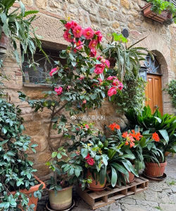 这些盆栽适合在极窄巷子中布置,既美观又实用。