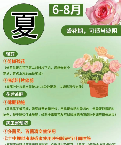 - 月季花品种多样,不同品种的养护需求略有差异,可根据具体品种调整。