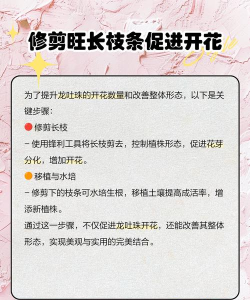 - 避免过量氮肥,以免促进枝叶生长而抑制开花。