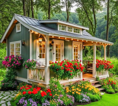 根据用途设计花园屋子的形状和大小。常见的设计包括: