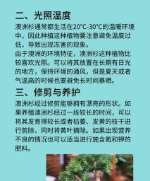 - 光照:澳洲杉喜欢半阴或散射光,避免长时间暴晒。