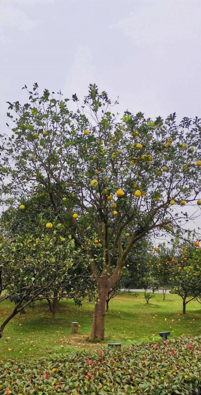 柚子树成熟期较长,通常需要6-7年才能进入盛果期。由于其生长旺盛且树冠庞大,定植时不宜太过密集。一般而言,坡地每亩可种植40-45株,若采用矮化密植技术,则每亩可种植50-60株。过密的种植会影响树木的生长,因此需要根据柚子树的生长特性来调整种植密度。