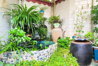 庭院鱼池种菜养花