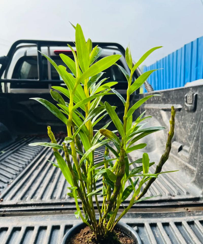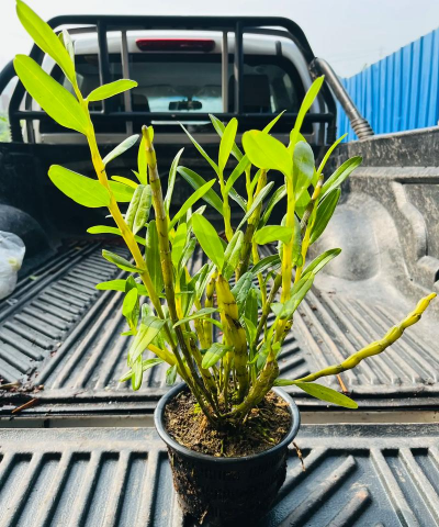 现象:金钗石斛杆颜色变绿,可能是光照不足,导致叶绿素积累过多。