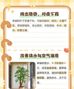 幸福树在冬季出现黄叶现象,通常与光照、温度、水分、土壤肥力或病虫害有关。以下是常见原因及解决方法: