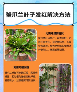 蟹爪莲红叶子通常与光照、浇水、营养或病虫害有关。建议根据具体情况调整养护措施,保持适宜的环境条件,促进植物健康生长。