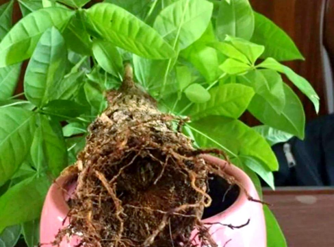 烂根的主要原因是根系受潮或积水过多。首先,将红叶发财树从花盆中取出,轻轻抖落泥土,检查根系是否腐烂。如果根系发黑、软烂、有异味,说明已经烂根。