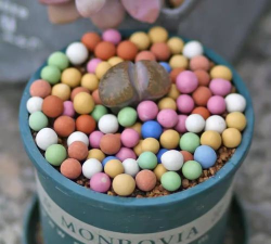 彩色陶粒因其透气性好,非常适合用于多肉植物的种植。它可以帮助保持土壤的透气性,防止根部腐烂,同时也能帮助植物更好地吸收水分。
