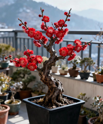 梅花盆栽过冬需要注意温度、光照和浇水等管理,以确保其安全越冬。以下是具体建议: