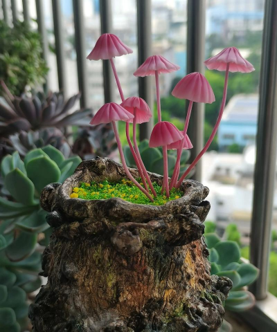 废弃蘑菇棒养花