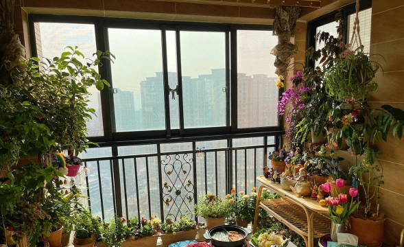 阳台是家庭或办公场所的一部分,养花可以增加空间的色彩和生机,使环境更加生动、温馨。