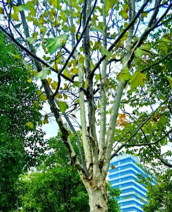 因此笔者建议幼树的修剪不宜过重,应该在生长期轻疏剪,不短截,给幼树充足的发育时间。但对主干短截不宜过晚,防止主杆和主枝争夺养分,造成主枝发育不良。对分枝点以下的枝条也应该及早疏除,防止其争夺培养枝养分。选主枝不宜过早,应留预备枝,所留主枝不应该少于四个,这样的法桐树形丰满,营养充分,即便一枝受损也不会对整体树势有太大影响。