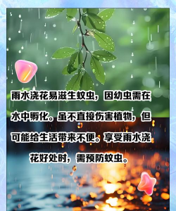 综上所述,雨水是养花过程中不可或缺的因素,合理利用雨水有助于提高植物的生长质量和产量。