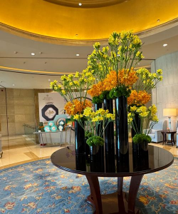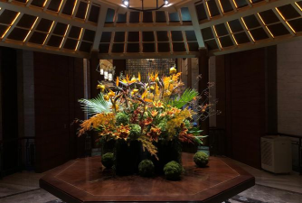 酒店可能会在公共区域、客房、走廊、餐厅等地方布置花艺,使整个空间更加美观。花艺布置需要考虑美观与实用的平衡。