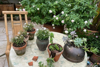 将砂锅底部挖出一个凹槽,作为种植箱使用,适合种植小型盆栽或垂直种植。