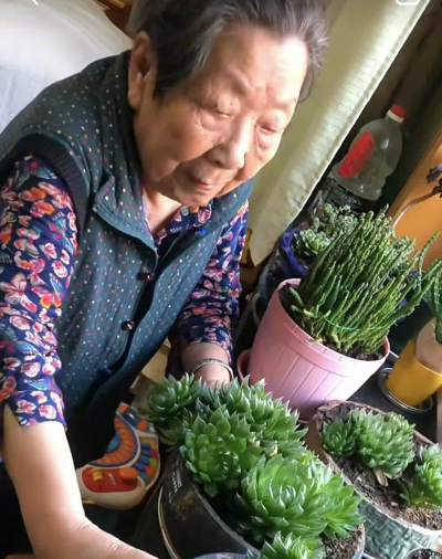 婆婆在东北养花